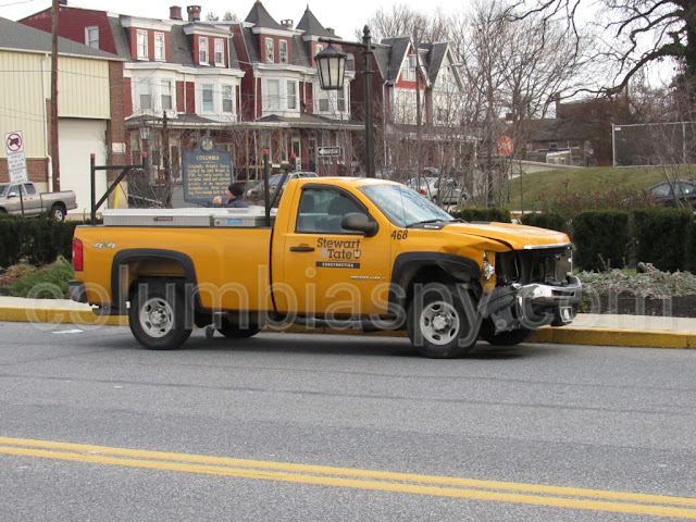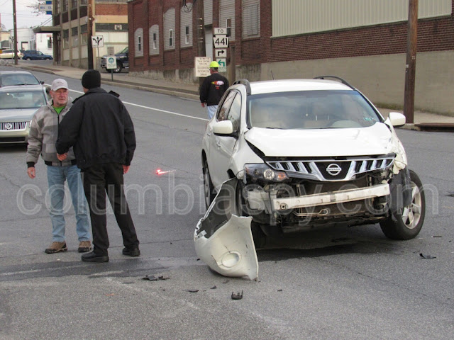 A two-vehicle accident occurred Thursday shortly before 3 p.m. near the entrance to the Veterans Memorial Bridge. According to witnesses, the driver of a Nissan Murano traveling south on North Second Street failed to stop at a stop sign and was hit by a Chevy Silverado heading west on Route 462. Both vehicles sustained front end damage, and an air bag deployed in the Nissan. The Nissan driver told Columbia Spy that his vehicle was worth about $7,000. He believed it to be totaled. The intersection was closed for over an hour as personnel investigated.