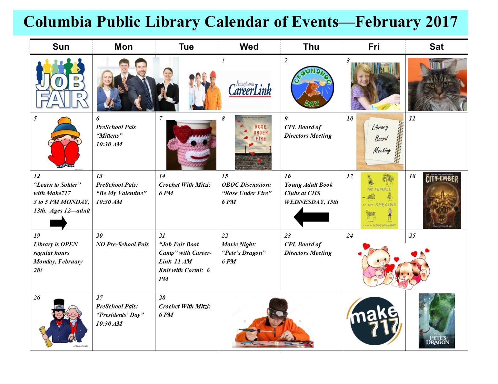 February Events at the Columbia Public Library Share this: Share on X (Opens in new window) X Share on Facebook (Opens in new window) Facebook More Share on Bluesky (Opens in new window) Bluesky Share on X (Opens in new window) X Like Loading... Related