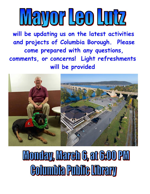 1. Mayor Lutz gave a very nice presentation last night with ongoing and future projects for the borough. Too bad not many citizens came.