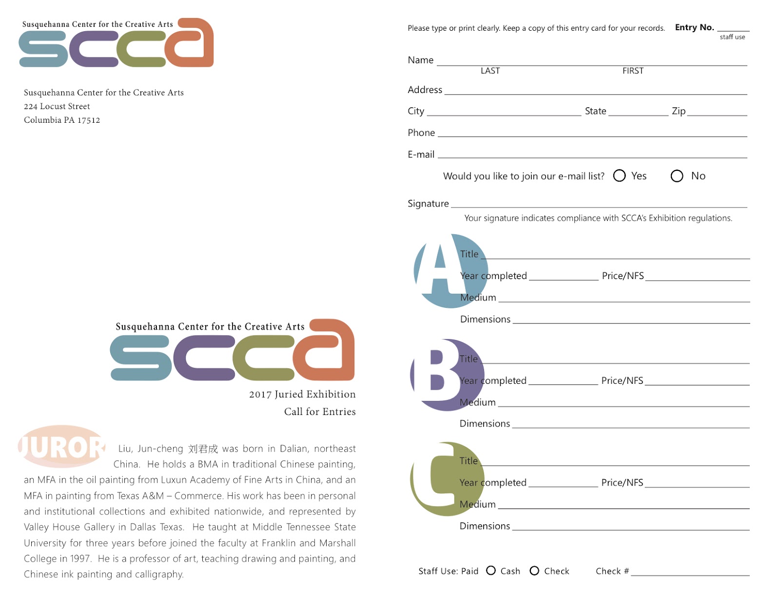 Liu, Jun-Chen, Professor of Art at Franklin and Marshall College has graciously accepted an invitation to serve as juror.