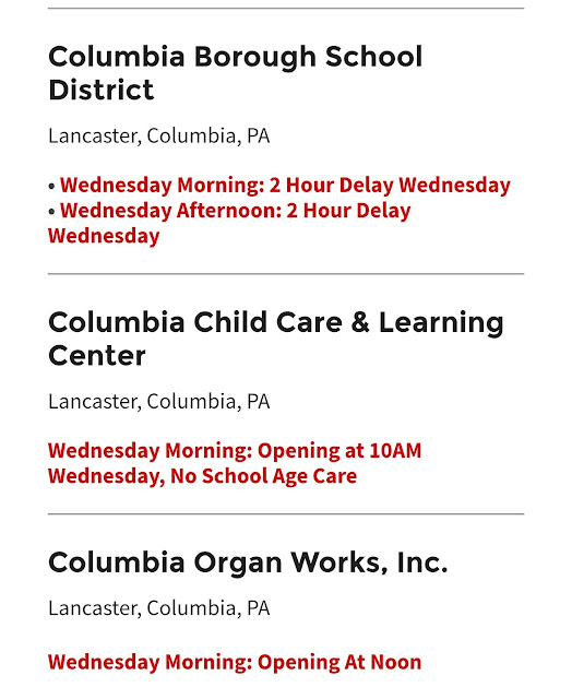 COLUMBIA CLOSINGS/DELAYS FOR WEDNESDAY, MARCH 15 Share this: Share on X (Opens in new window) X Share on Facebook (Opens in new window) Facebook More Share on Bluesky (Opens in new window) Bluesky Share on X (Opens in new window) X Like Loading... Related