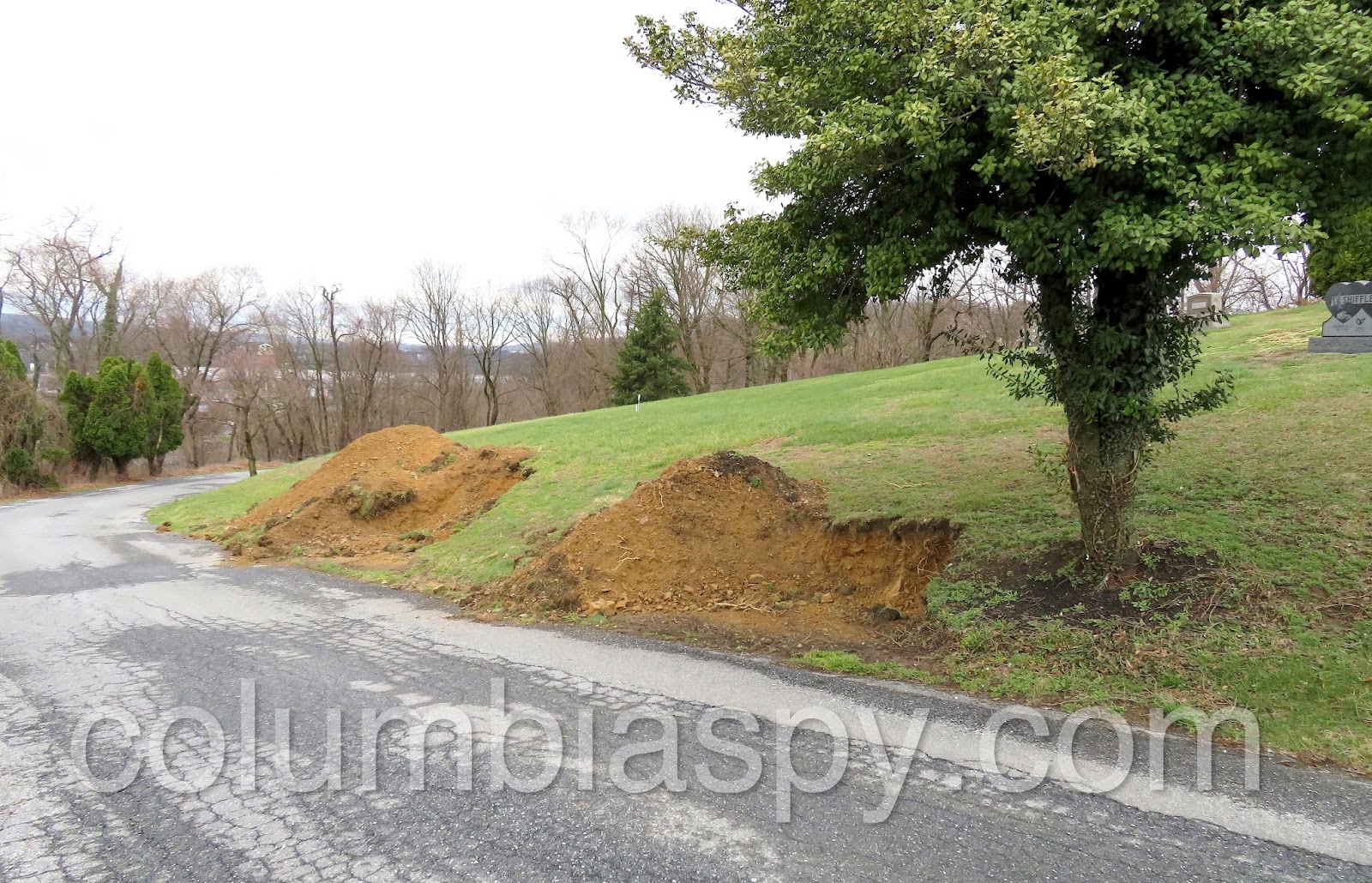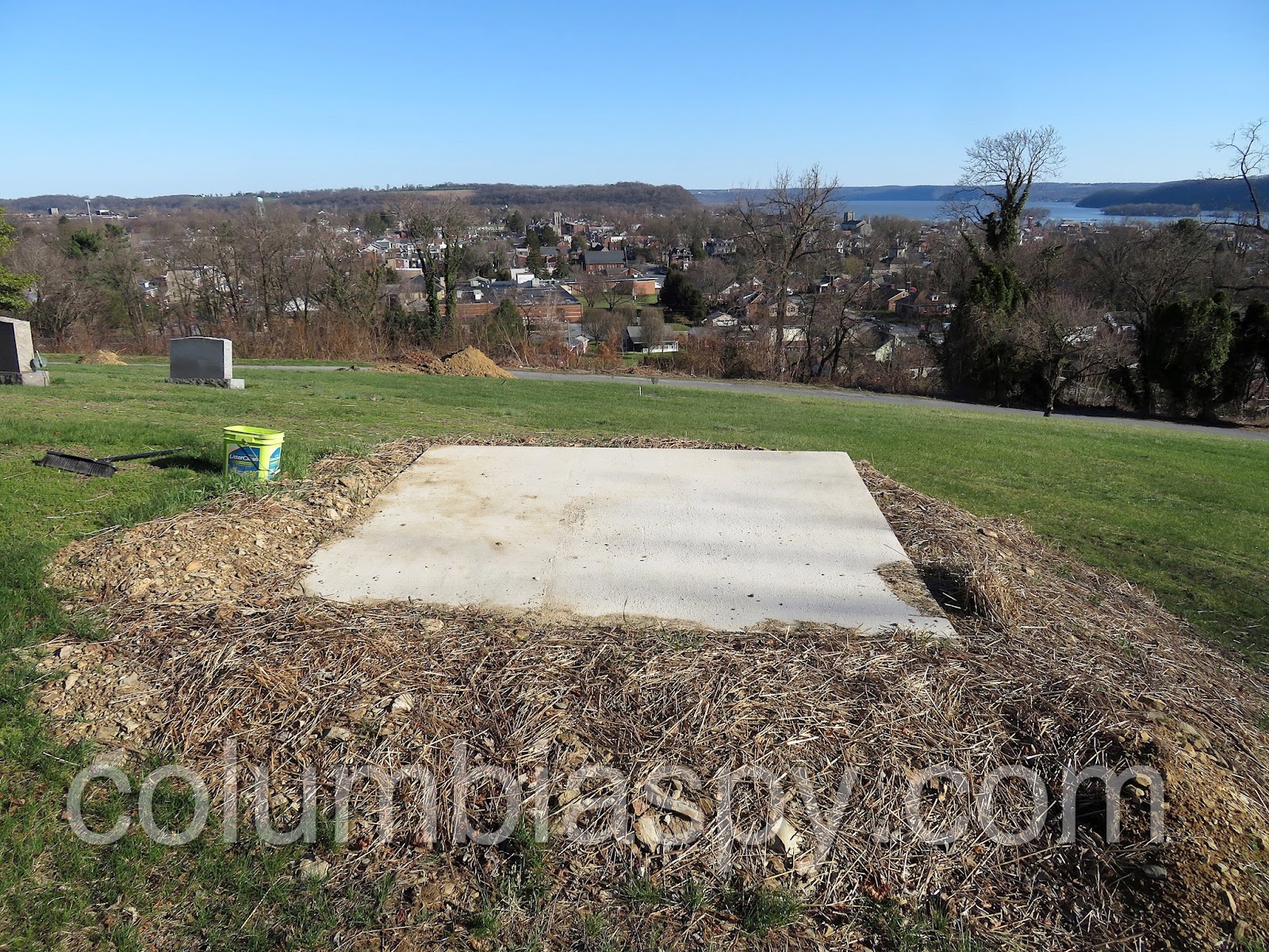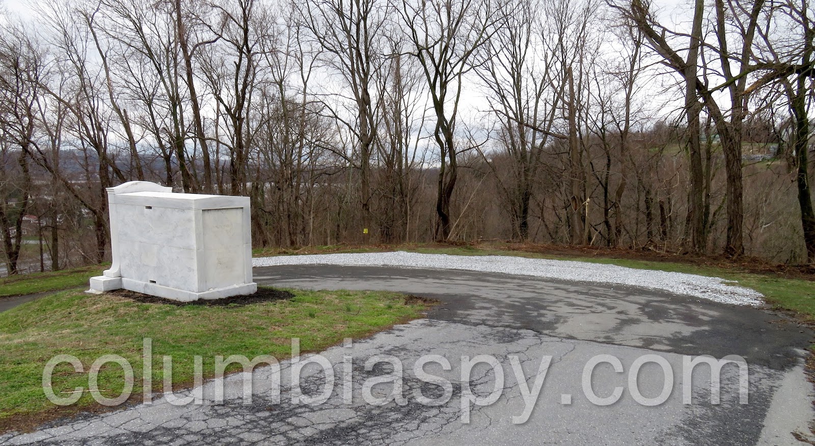 A few days later, crushed stone was placed on the muddy perimeter of the turn. Another delivery attempt with a different crane will be made Monday morning, April 3. A source close to the project told Columbia Spy that the four-unit, $50,000 mausoleum is currently being stored on the truck.