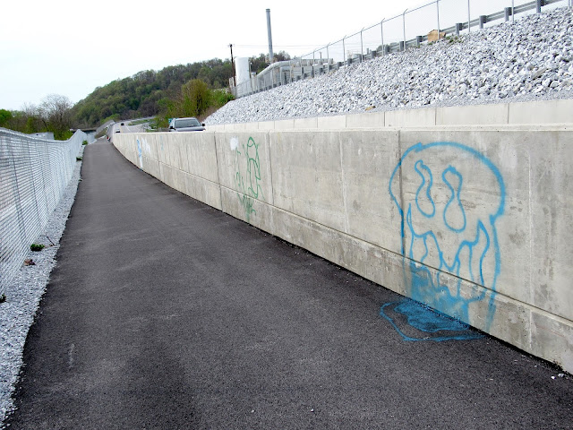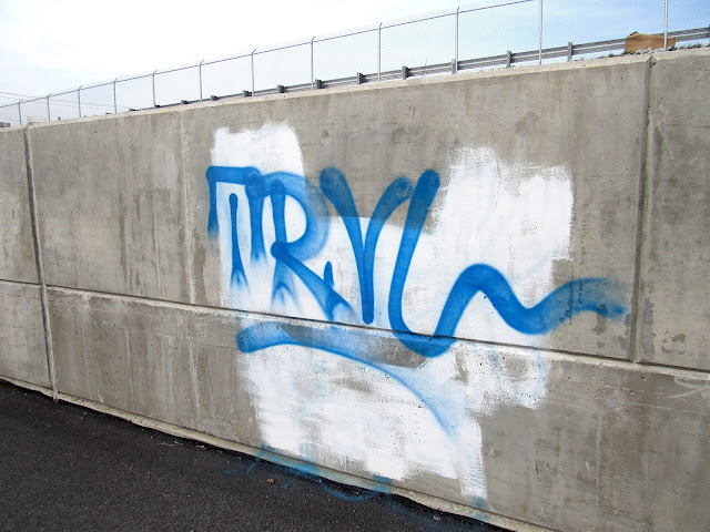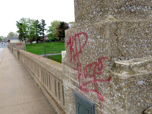 More graffiti has been noted recently, this time on Jersey barriers along Front Street (under the Veterans Memorial Bridge), and along the Route 441 bypass. Trailers parked near Bootleg Antiques, and the concrete wall leading to the Northwest Lancaster County River Trail were also spray-painted. This incident is believed to have occurred this past Tuesday evening, according to sources.