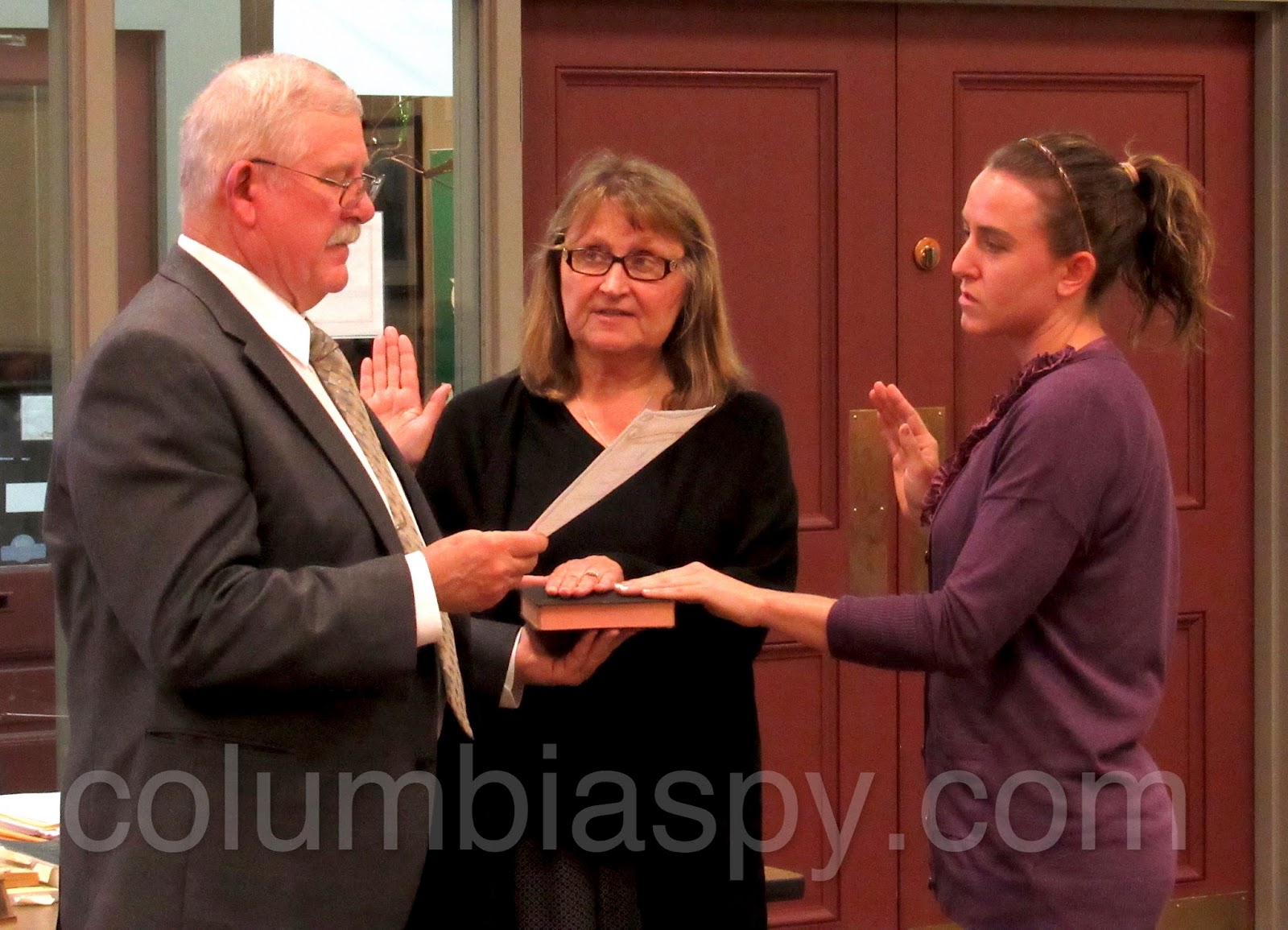 Barbara Fisher (center) and Charity Kadwill were sworn in to the Columbia Borough Planning Commission by Mayor Leo Lutz at Monday’s Borough Council meeting.