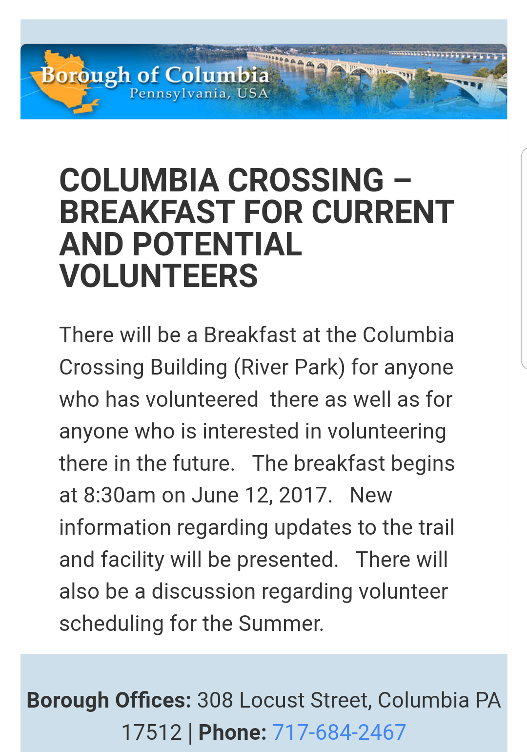 Columbia Crossing to hold Volunteer Breakfast June 12 Share this: Share on X (Opens in new window) X Share on Facebook (Opens in new window) Facebook More Share on Bluesky (Opens in new window) Bluesky Share on X (Opens in new window) X Like Loading... Related