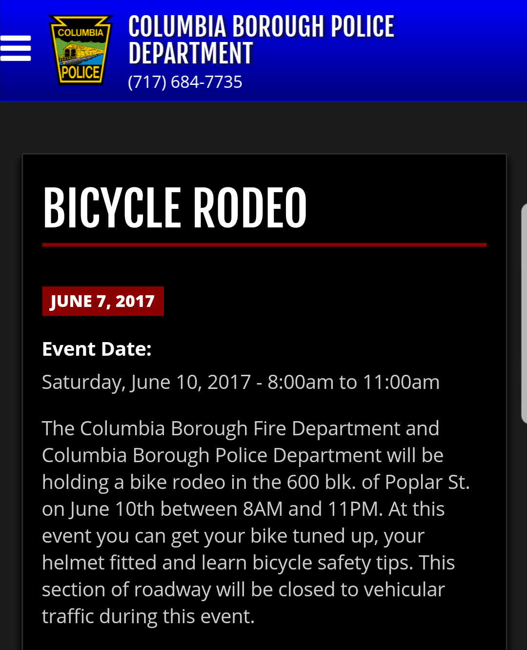Bicycle Rodeo this Saturday Share this: Share on X (Opens in new window) X Share on Facebook (Opens in new window) Facebook More Share on Bluesky (Opens in new window) Bluesky Share on X (Opens in new window) X Like Loading... Related