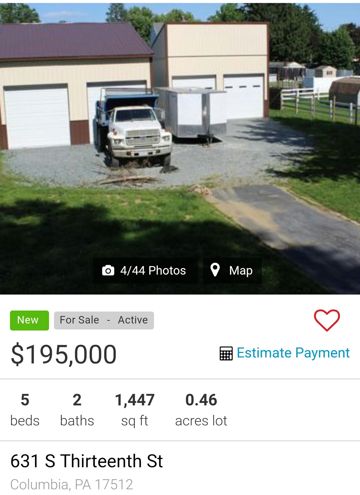 1. This is a perfect example of how badly Columbia home owners have been treated by their elected officials the last few years. This story is very interesting if you have followed since it began. This site did a great job of covering this since the start (nice work Cole).This project should have never been approved. Residents concerns were dismissed until they proved that this project violated the zoning code and they hired their own lawyer. Ultimately the Zoning Hearing Board agreed that this was a violation and construction was at a stand still for over a year while the property owner appealed the ruling.Ultimately the owner compromised and cut the 3,800 square foot structure into 2 500 square foot structures. Borough Council, the Mayor, and the zoning officer all sided with a non-resident that bought the property for two reasons- turn the house into a rental property and build an enormous structure to store his equipment that he did not have to look at each day from his house in another township. The residents on this street took care of their properties. Some had been passed down through generations. Unfortunately some of those very owners had enough and moved out of the borough over this fiasco. Now the property is listed for sale. The listing mentions CONSTRUCTION equipment storage and possible APARTMENT usage, neither are allowed in this low density residential district. It will be interesting if even more codes are overlooked to appease this out of town owner. This town will continue to see an exodus of long term property owners with this leadership in place. Then again, this could be a nice addition to the airport, or it could become part of the Hotel Locust and Bigler portfolio. The borough does seem to like the real estate business. Or it could become the Columbia West addition to the river storage units currently being built by a local realtor that was involved in this original pole barn deal.