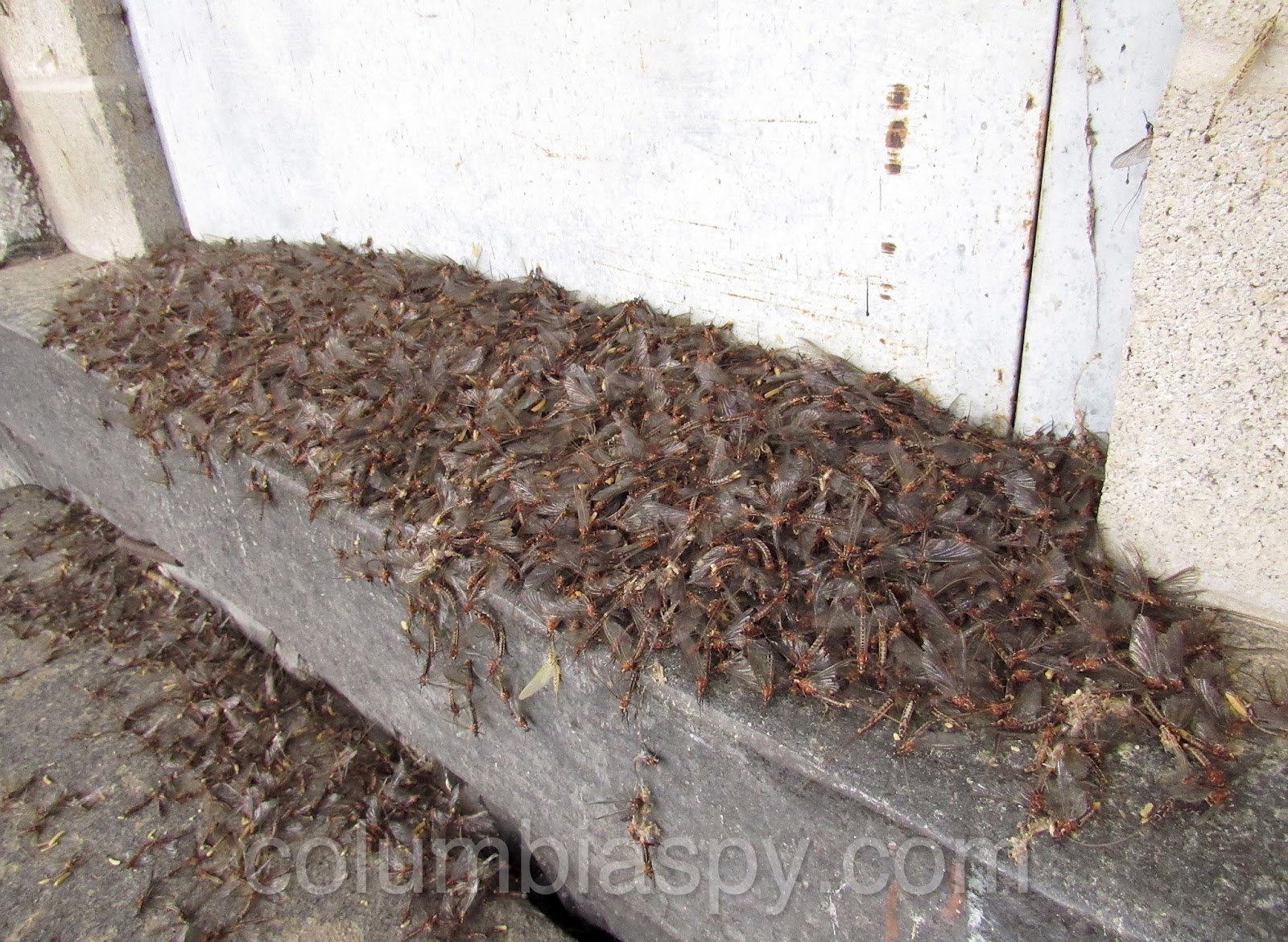 Mayflies have invaded Columbia! They even attached themselves to a Columbia flag so that the invasion would be symbolic as well as literal. Clever little creatures!