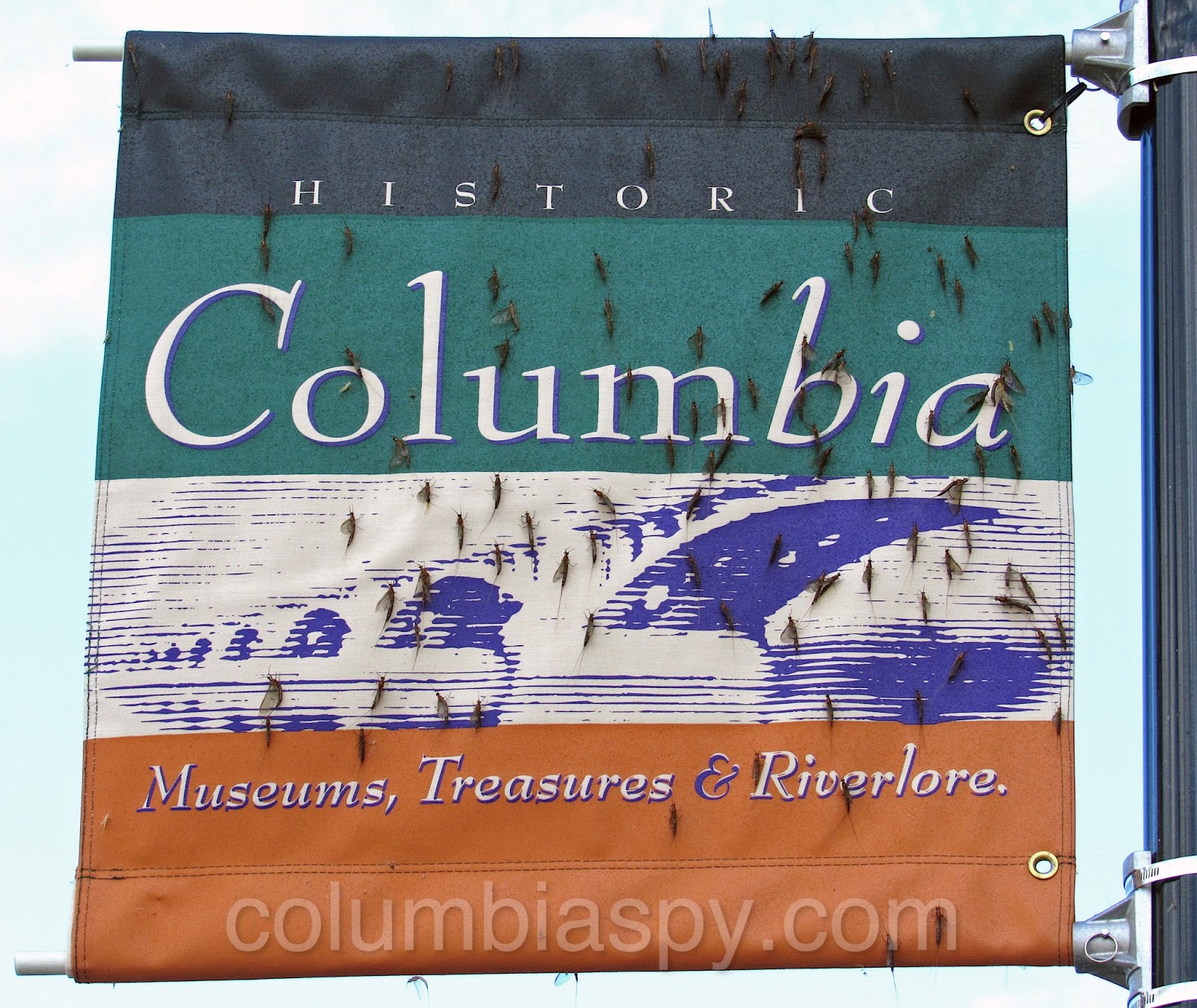 Mayflies have invaded Columbia! They even attached themselves to a Columbia flag so that the invasion would be symbolic as well as literal. Clever little creatures!