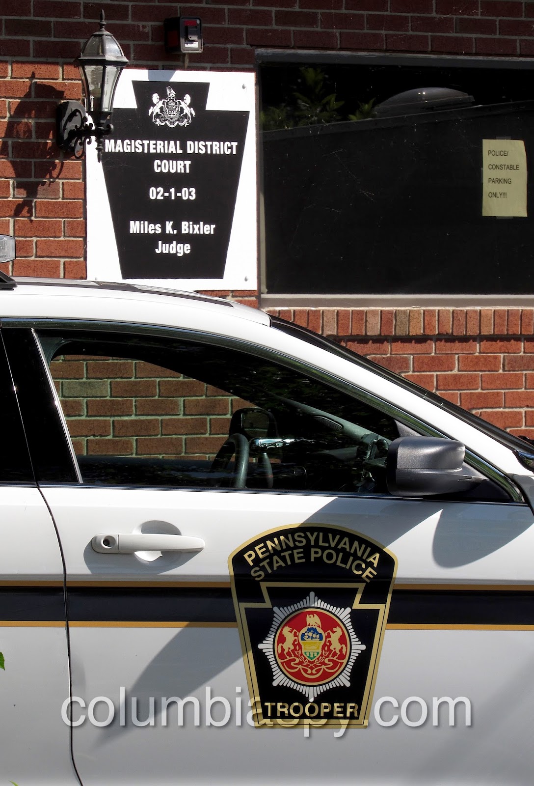 State police vehicle at Miles Bixler’s office.