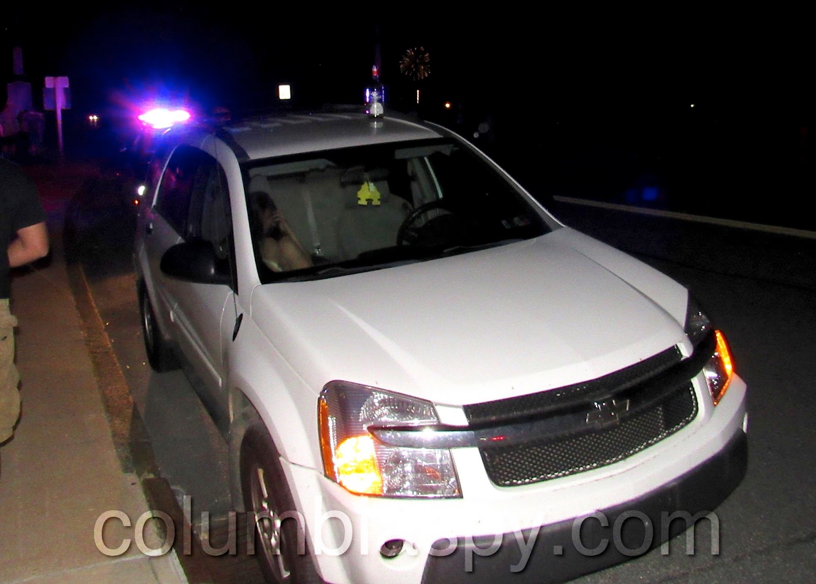 During Wrightsville’s fireworks display on July 4, Wrightsville and Hellam Township Police pursued a vehicle across the Veterans Memorial bridge. The vehicle pulled over on the Columbia side of the bridge near Rotary Park. When Columbia Spy arrived on the scene, police were handcuffing the driver of the vehicle, who was then led away and placed in a police car. A partially empty liquor bottle was sitting atop the vehicle, presumably placed there by the driver or police.