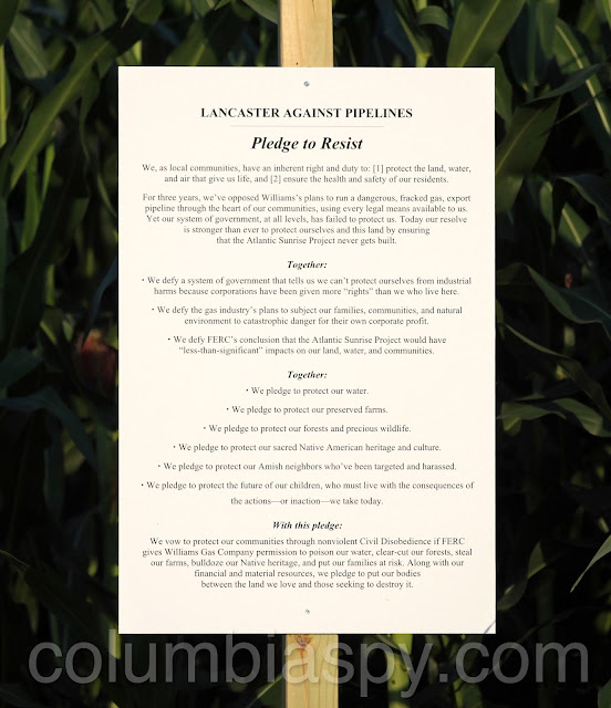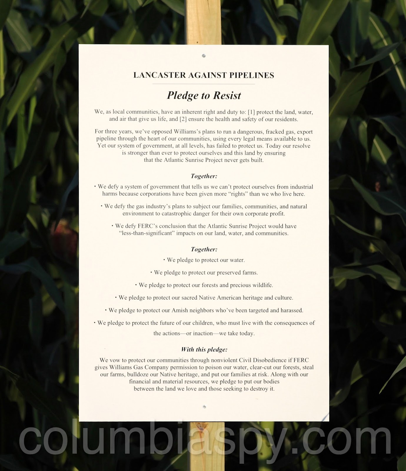About 100 opponents of the Atlantic Sunrise Pipeline project gathered for an evening vigil at an outdoor chapel in West Hempfield on Sunday. Nuns from the Adorers of the Blood of Christ, who oppose the Williams Company’s plan to route the pipeline through their land, led the gathering through speeches, music, and prayer. Members of Lancaster Against Pipelines were also present to show support for the nuns’ stance.