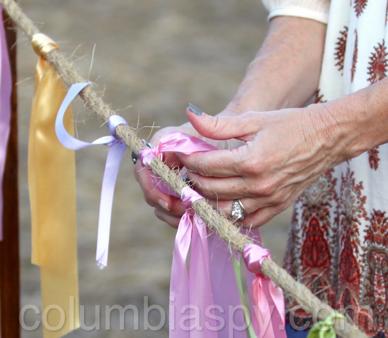 To conclude the ceremony, attendees attached ribbons to the rope around the chapel grounds.