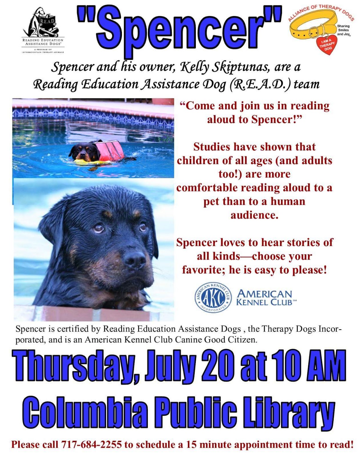 Spencer at the library Thursday, July 20 Share this: Share on X (Opens in new window) X Share on Facebook (Opens in new window) Facebook More Share on Bluesky (Opens in new window) Bluesky Share on X (Opens in new window) X Like Loading... Related