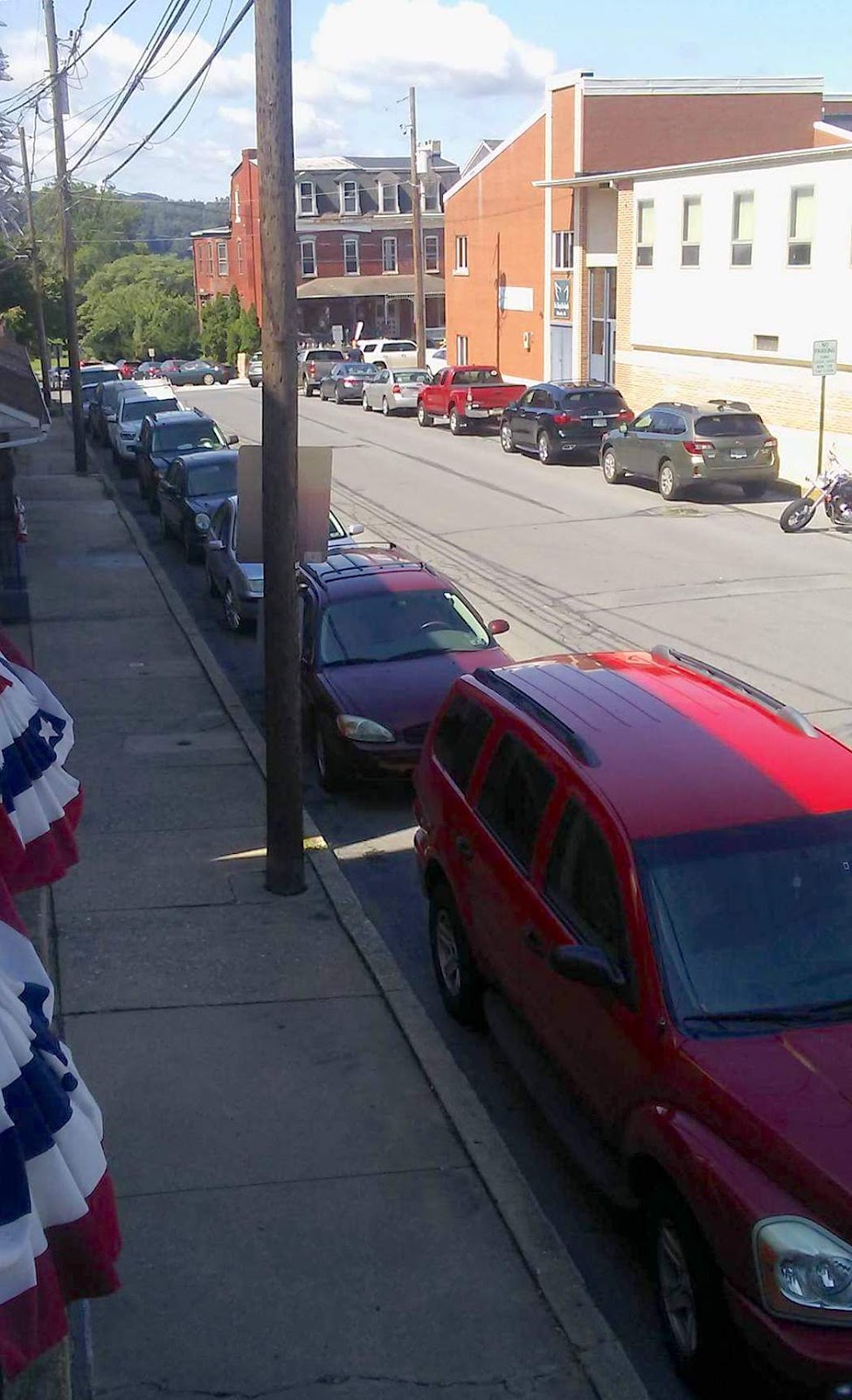 Cars line Union Street next to Saint Peters Catholic Church this morning.