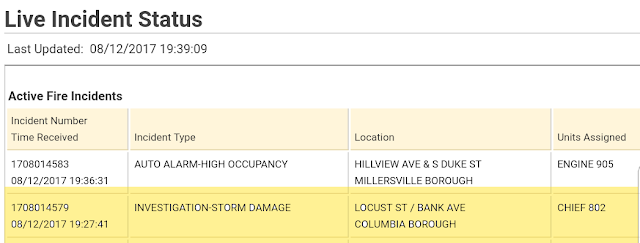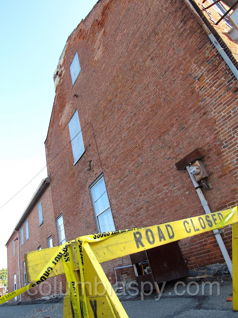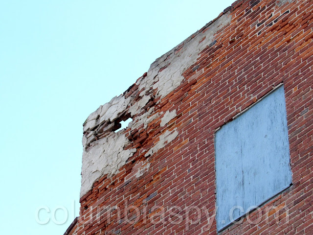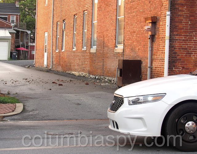 Emergency crews were called to the northern section of Bank Avenue Saturday afternoon for a report of bricks falling from the side of a building. Several broken bricks were found on the roadway near the intersection of Bank Avenue and Locust Street.  According to witnesses, the bricks were dislodged when lightning struck the building during a storm that passed through that afternoon. The side of the building has several missing bricks and a partial veneer of concrete near the top, which may have been applied to secure loose bricks.