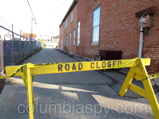 That section of Bank Avenue has now been closed. The building – at 131 Locust Street – is home to Art Printing Co, Inc., which recently acquired it.