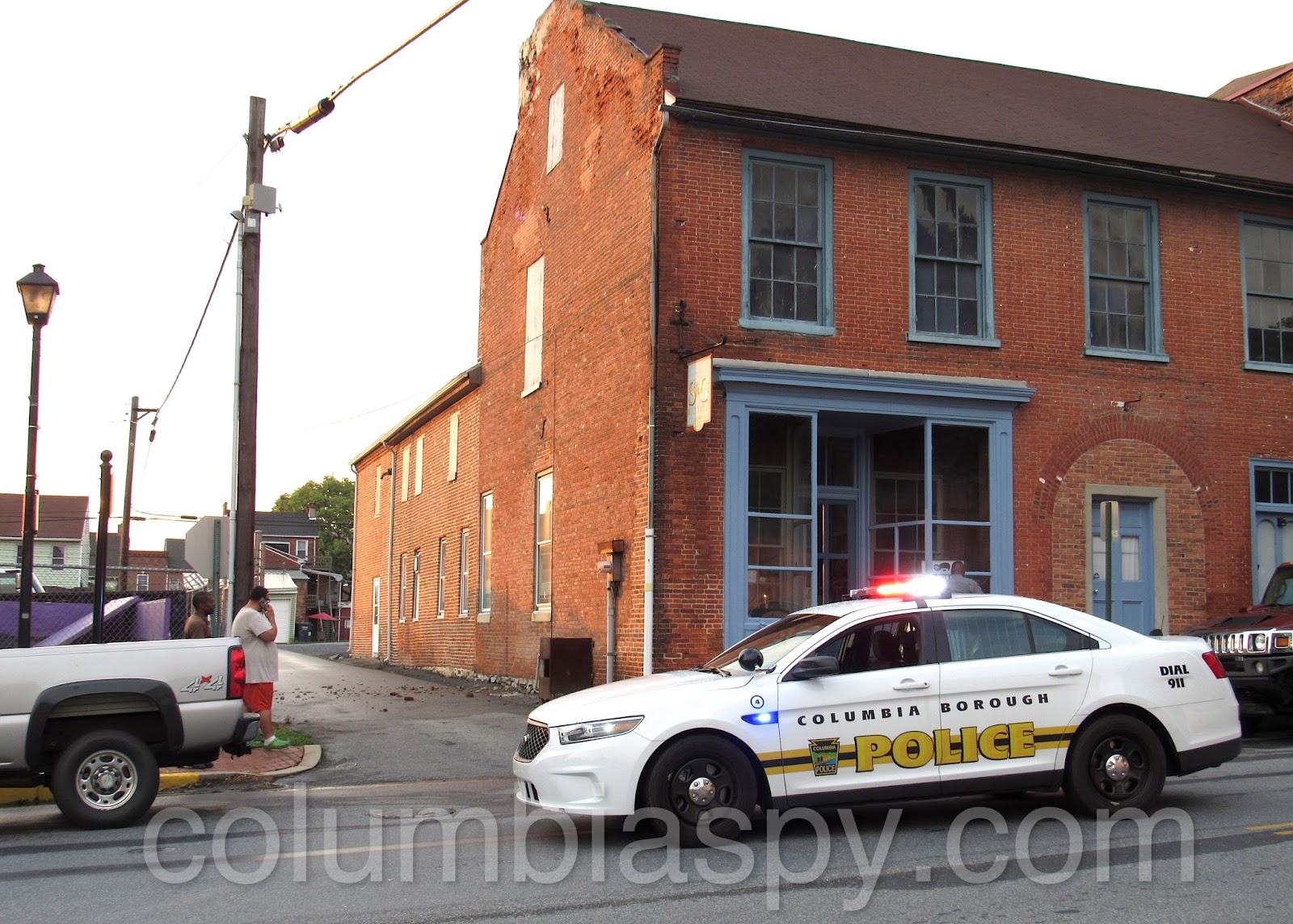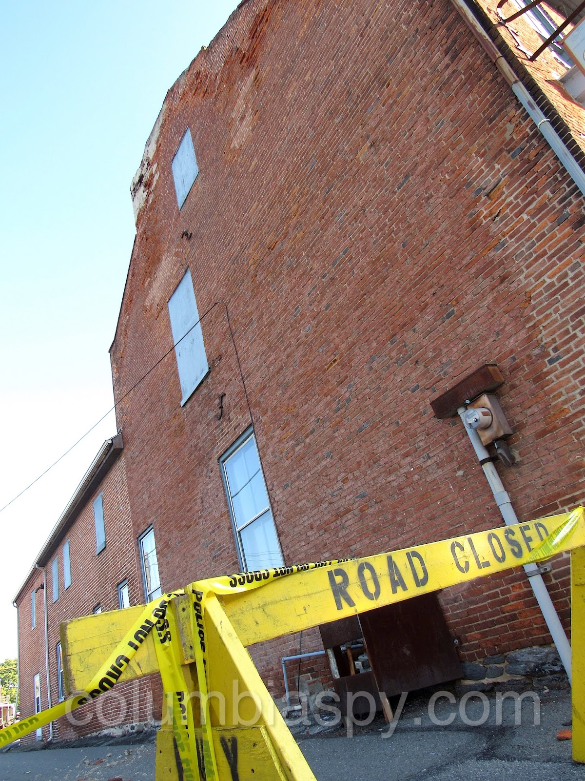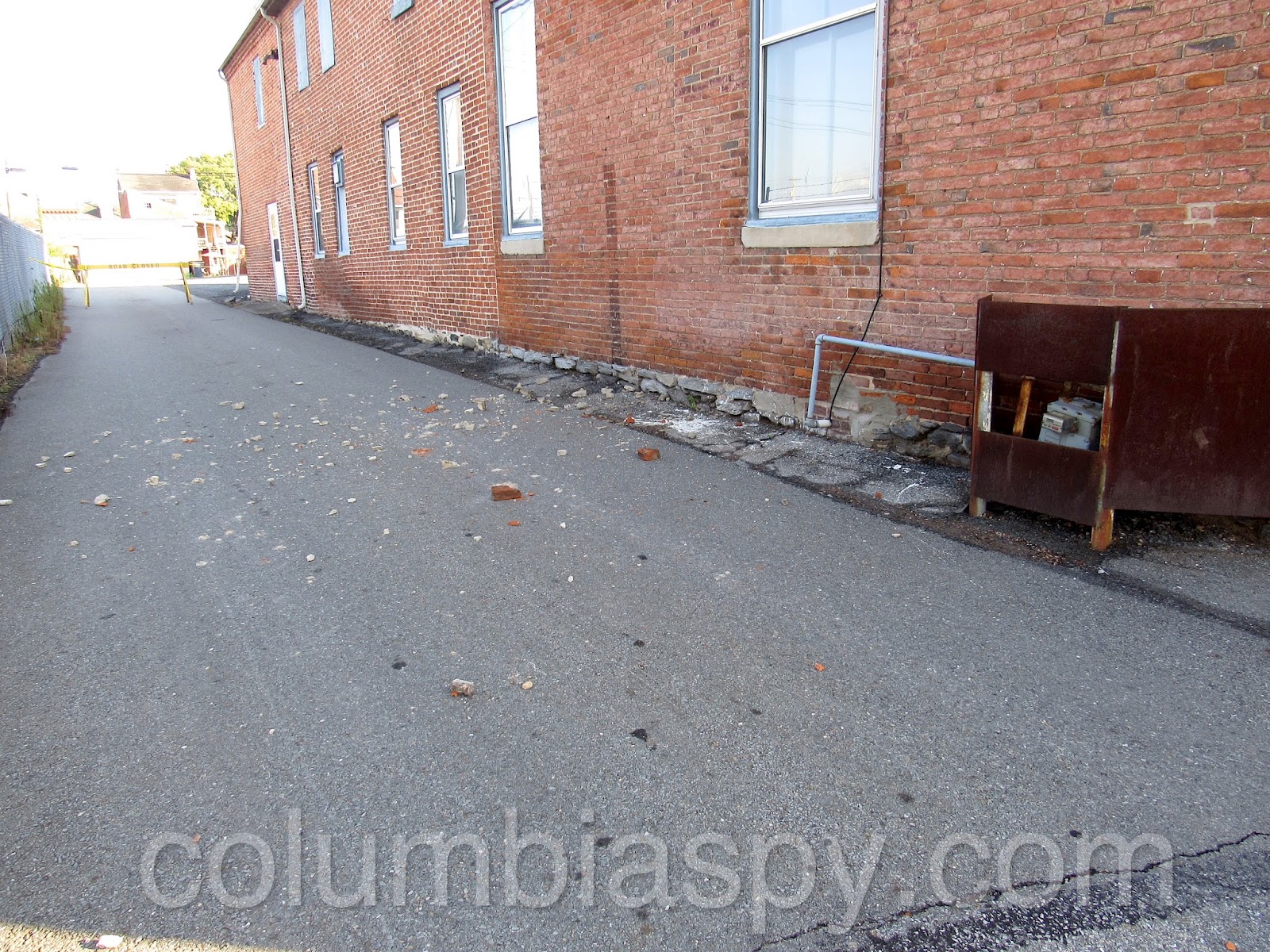 Emergency crews were called to the northern section of Bank Avenue Saturday afternoon for a report of bricks falling from the side of a building. Several broken bricks were found on the roadway near the intersection of Bank Avenue and Locust Street.  According to witnesses, the bricks were dislodged when lightning struck the building during a storm that passed through that afternoon. The side of the building has several missing bricks and a partial veneer of concrete near the top, which may have been applied to secure loose bricks.