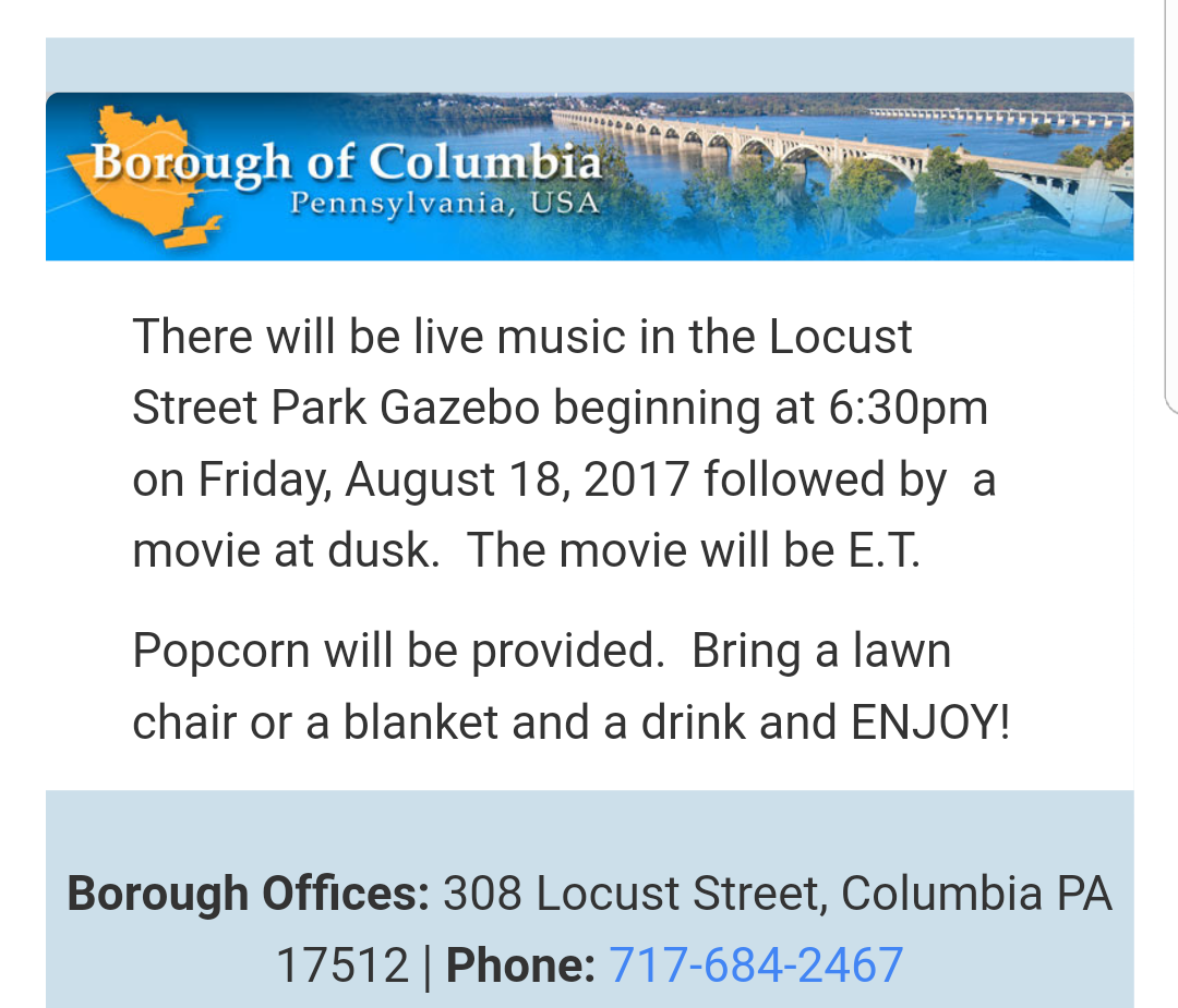 Music and movie in the park this coming Friday Share this: Click to share on X (Opens in new window) X Click to share on Facebook (Opens in new window) Facebook More Click to share on Bluesky (Opens in new window) Bluesky Click to share on X (Opens in new window) X Like Loading... Related