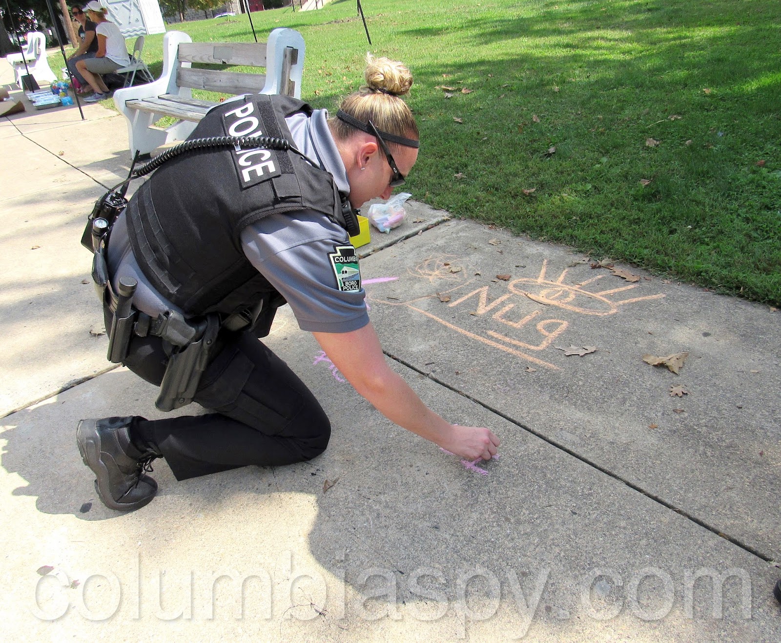 Columbia Borough Police Officer Holly Oster writes the name of the force’s new Instagram account.