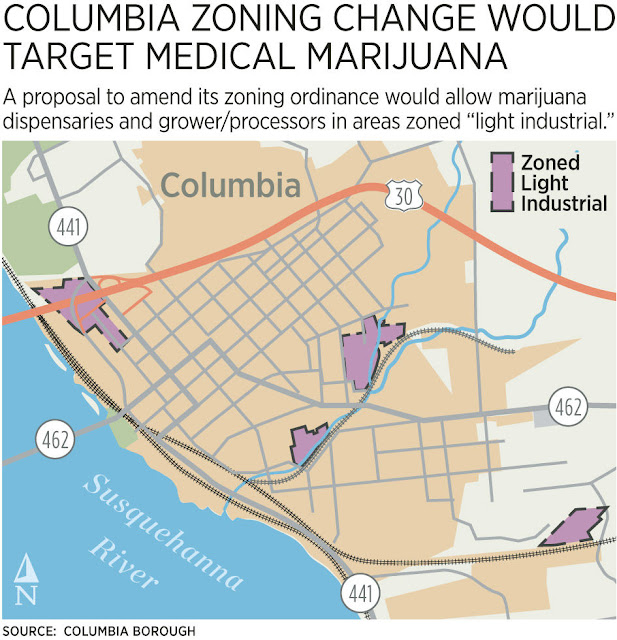 Columbia Borough is looking to amend its zoning to allow medical marijuana dispensaries and growers or processors in areas zoned “light industrial.”