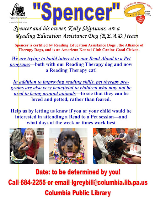 Schedule a Read to a Pet session with Spencer at the library Share this: Share on X (Opens in new window) X Share on Facebook (Opens in new window) Facebook More Share on Bluesky (Opens in new window) Bluesky Share on X (Opens in new window) X Like Loading... Related