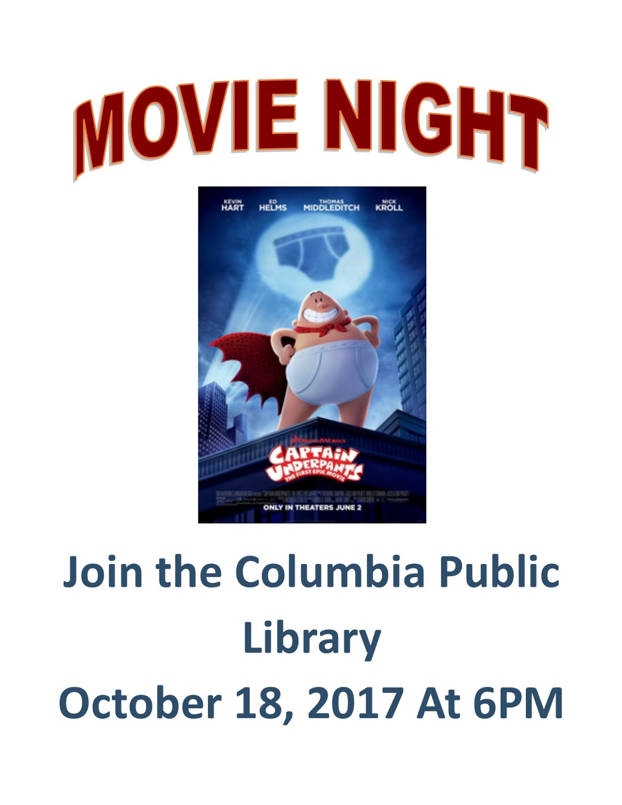 Wednesday movie night at the library Share this: Share on X (Opens in new window) X Share on Facebook (Opens in new window) Facebook More Share on Bluesky (Opens in new window) Bluesky Share on X (Opens in new window) X Like Loading... Related
