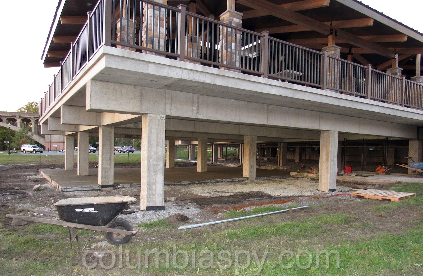 Cement was poured under Columbia Crossing today to form part of the slab for vendors.