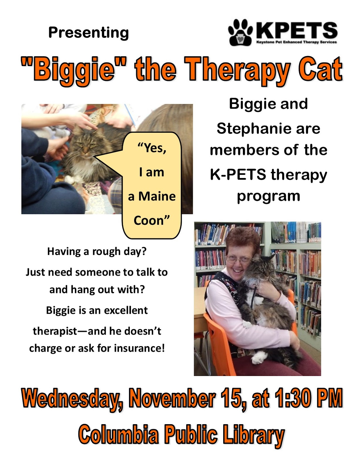 Biggie the Cat at Columbia Library Wednesday, November 15 Share this: Share on X (Opens in new window) X Share on Facebook (Opens in new window) Facebook More Share on Bluesky (Opens in new window) Bluesky Share on X (Opens in new window) X Like Loading... Related