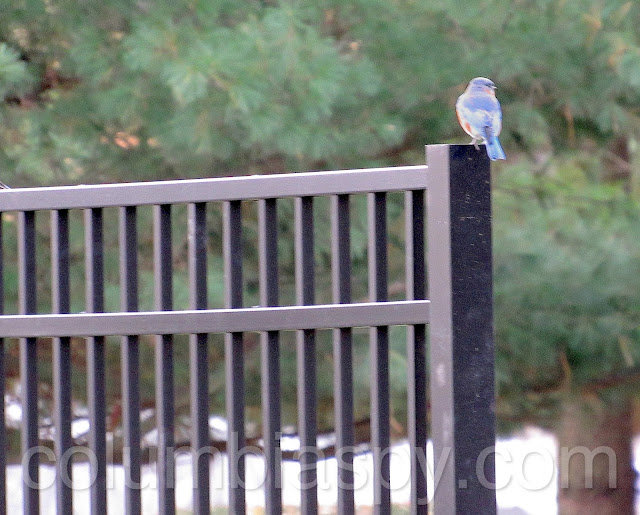 In fact, here’s the bluebird of happiness sitting on the selfsame fence.