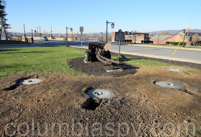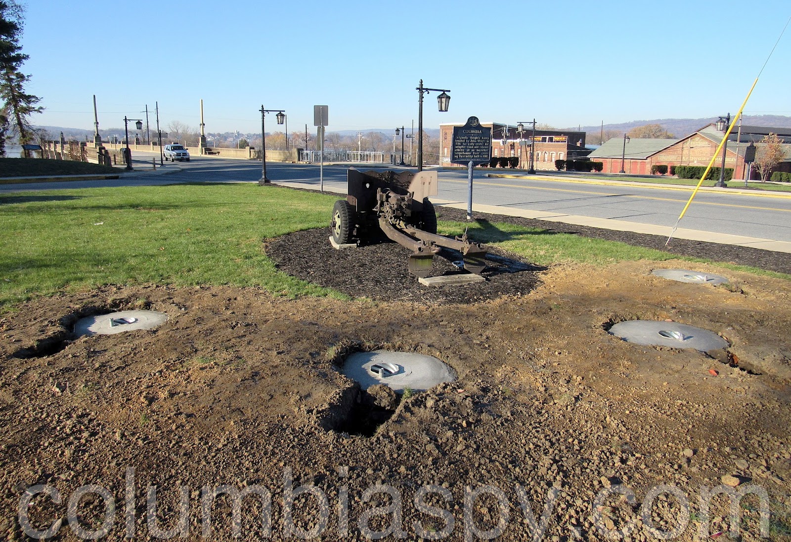 Meanwhile, down at the bridge, foundation sleeves – four on each side of the plaza (north and south) – have been placed in preparation for flagpole installation.