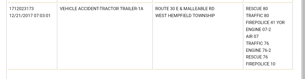 UPDATE 7:59 a.m.: Route 30 westbound traffic exiting at Prospect Road. 30 eastbound exiting in Wrightsville. Accident is on Route 30 near Malleable Road overpass.