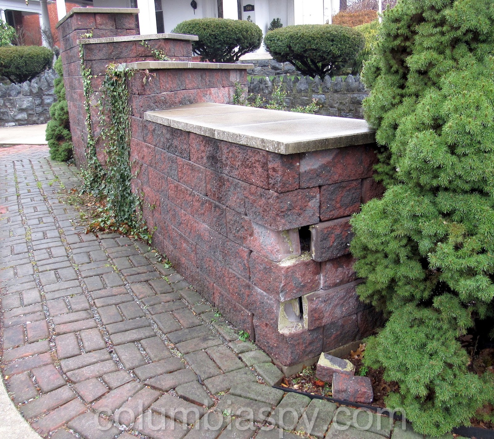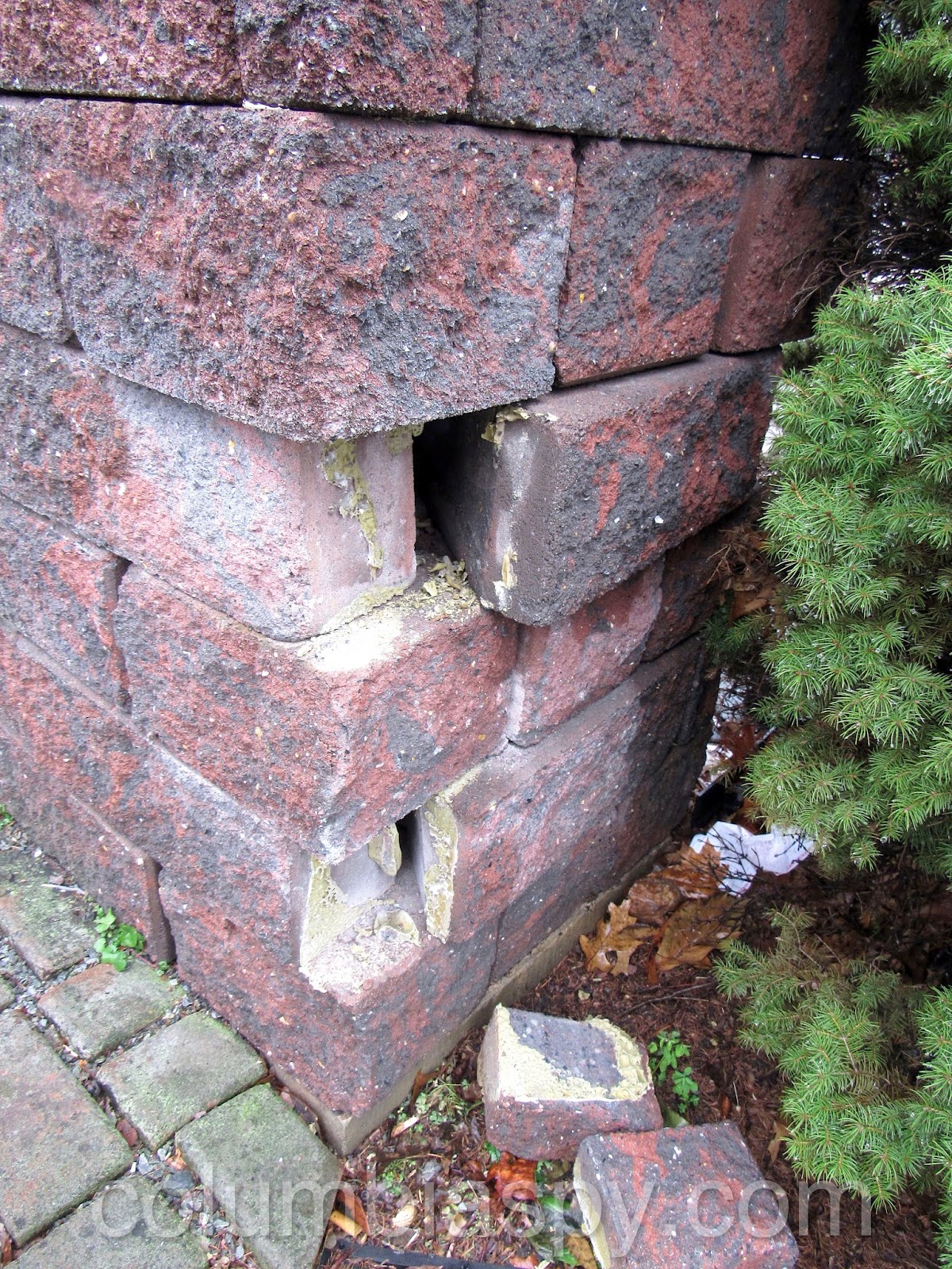 In a previous incident, a vehicle hit the plaza wall, dislodging several bricks (shown below) shortly after 6 o’clock Friday morning. A witness reported seeing a vehicle pulled over on Chestnut Street by a Columbia police officer. The vehicle was facing the wrong way on the 500 block of Chestnut, which is one-way.