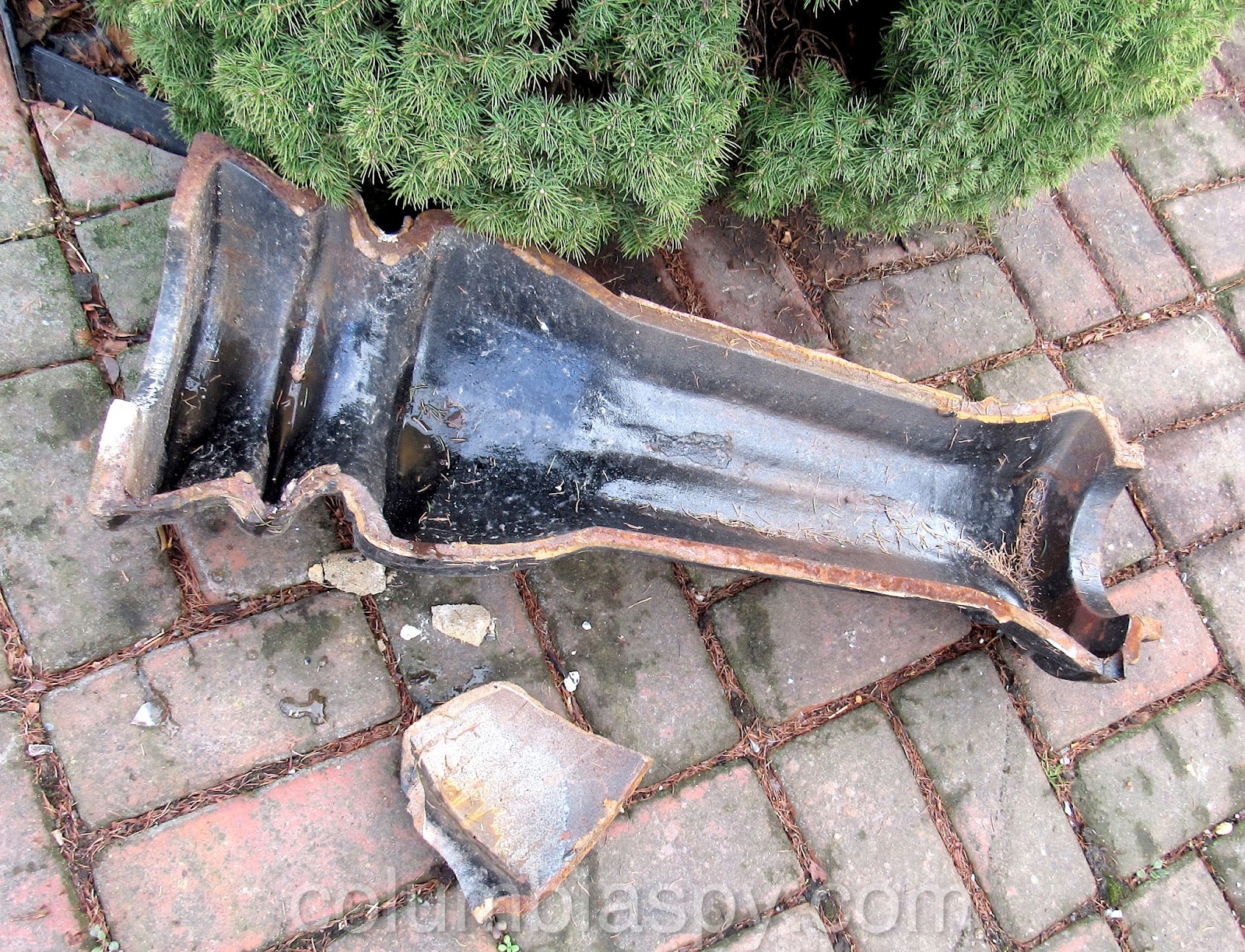 The clock plaza at 5th & Chestnut recently sustained damage from two separate incidents on two consecutive days. A hit-and-run occurred Saturday evening shortly after 7 o’clock in which a cast iron casing was broken completely off one of a row of bollards. Neighbors reported hearing a loud bang and found pieces of the casing a few minutes later but no vehicle at the scene. Police responded promptly and investigated.