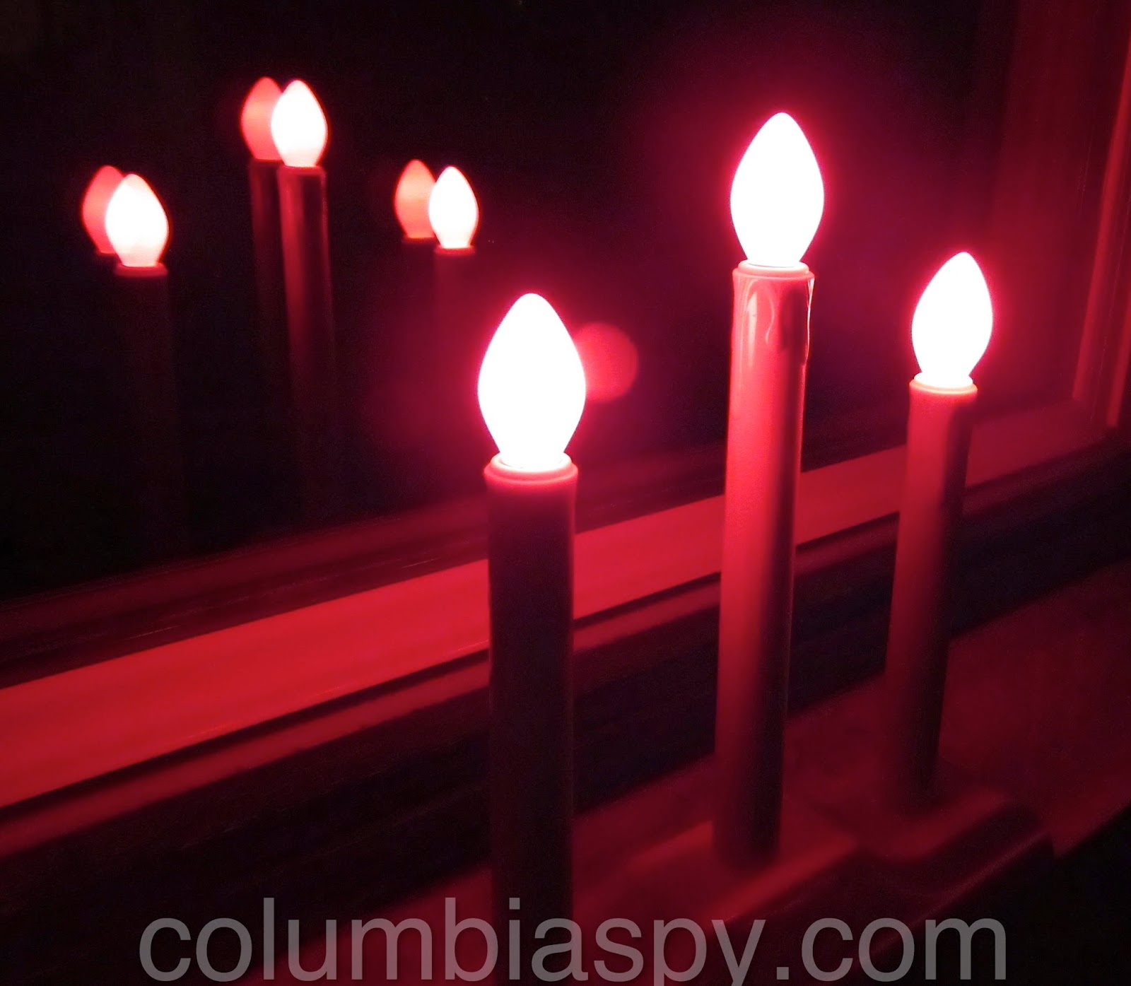Santa and reindeer conspiring to keep the secret from Mrs. Claus over who knocked over that candlestick.