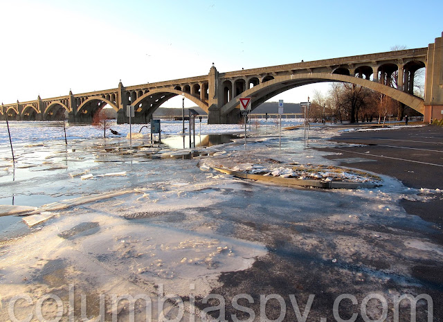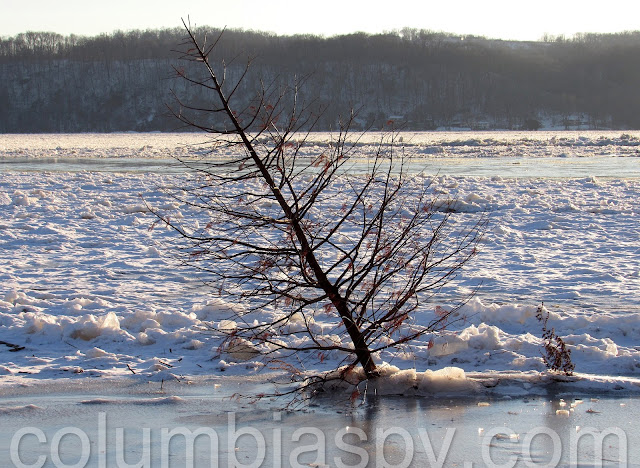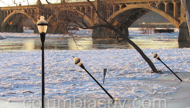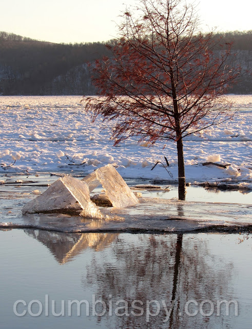 These photos were taken Thursday afternoon. Temperatures were finally above freezing, causing river ice to thaw and the river to flow. Warmer temps are predicted to prevail over the next few days. The ice left damage in its wake but also created some natural beauty, as shown here.