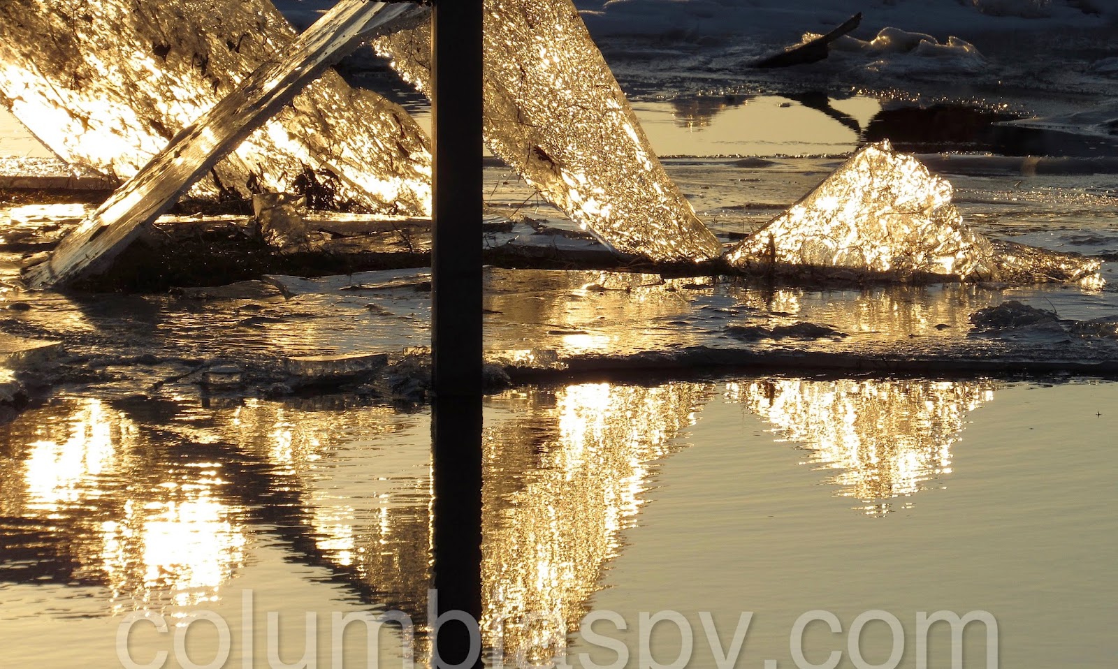 These photos were taken Thursday afternoon. Temperatures were finally above freezing, causing river ice to thaw and the river to flow. Warmer temps are predicted to prevail over the next few days. The ice left damage in its wake but also created some natural beauty, as shown here.