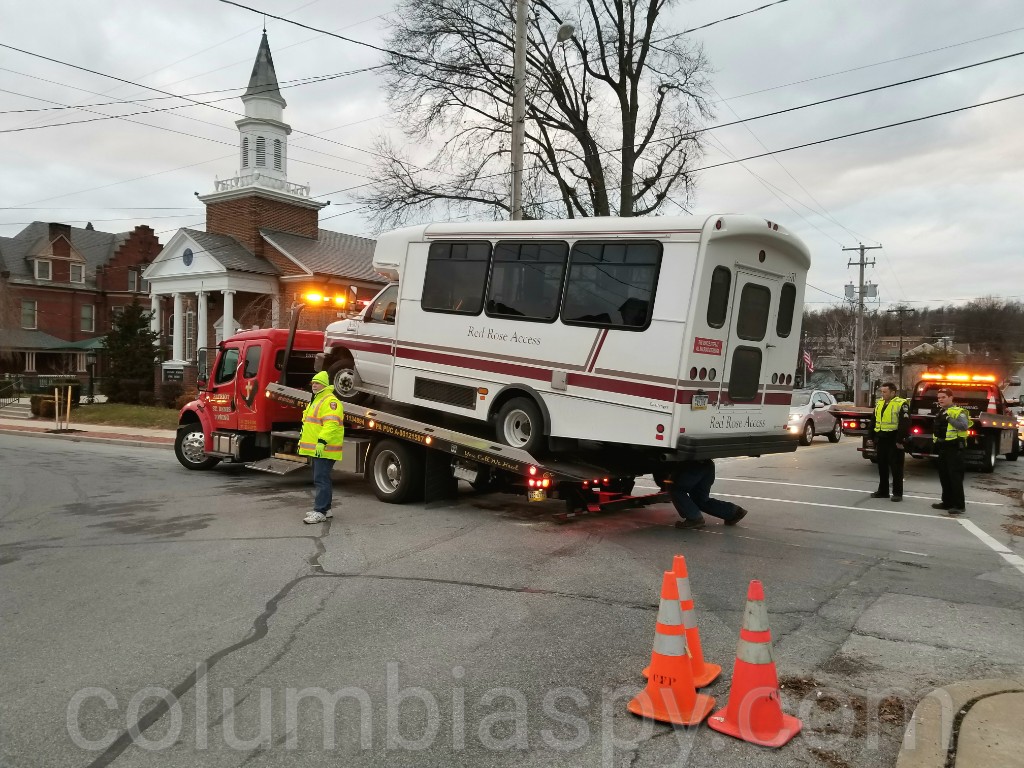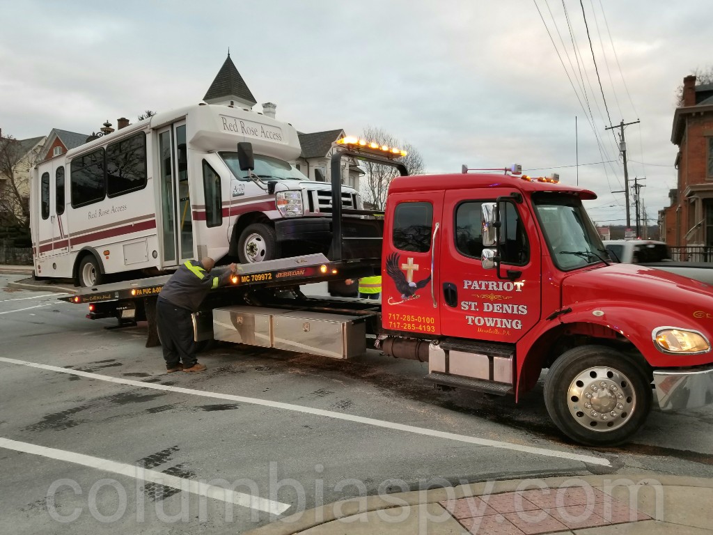 A Red Rose access bus was involved in a two-vehicle accident at North 5th and Chestnut Street this afternoon at about 4:15. According to Columbia Borough Police, the bus, which was heading west on Chestnut, collided with a car heading north on Fifth. The bus sustained front end damage and had to be towed from the scene. No reports of injuries. No information available on the make, model, and condition of the car involved.