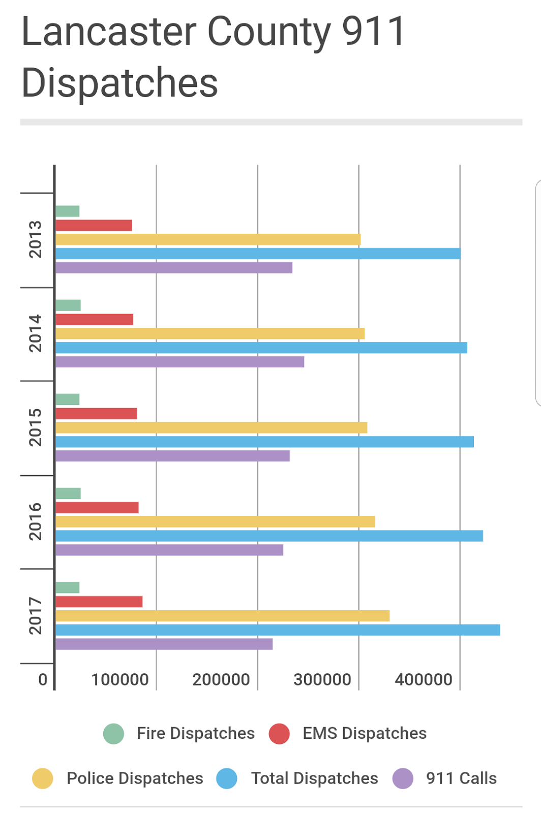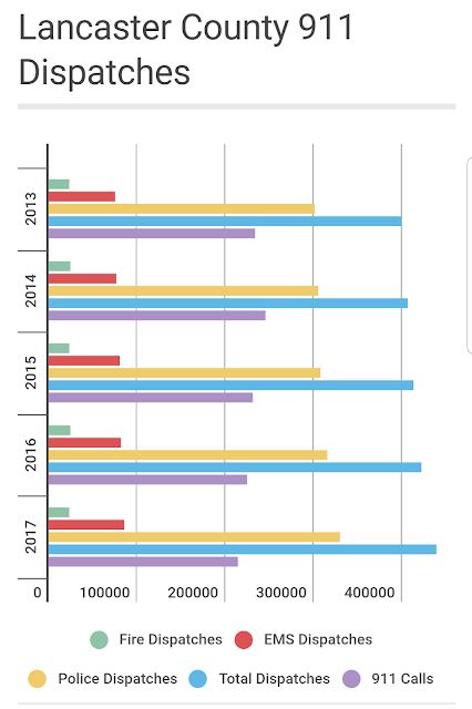 Seventy-five percent of the 439,691 dispatches were for police. Nineteen percent were for EMS, and six percent were for fire.