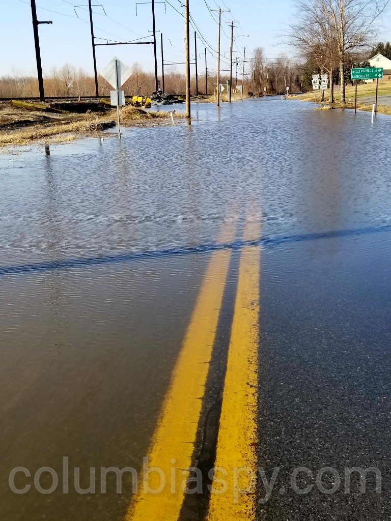 UPDATE 11:35 AM: WGAL REPORTED THIS MORNING THAT THE WATER ON THE ROADWAY WAS DUE TO ICE JAMS ON THE RIVER. THE REPORT OF A WATER MAIN BREAK WAS FROM EMERGENCY PERSONNEL SCANNER CHATTER.