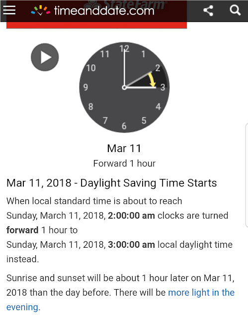 Spring Forward! Daylight Saving Time Starts March 11, 2018 Share this: Share on X (Opens in new window) X Share on Facebook (Opens in new window) Facebook More Share on Bluesky (Opens in new window) Bluesky Share on X (Opens in new window) X Like Loading... Related
