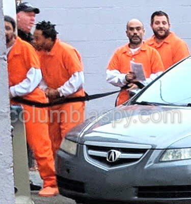 2. Howard was STILL trying to hide as he was ushered into the Magistrate's office. He used the other inmates to shield him from the camera. Sharon
