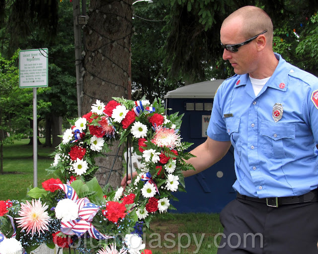Members of the Columbia Borough Fire Department placed wreaths at several Columbia locations today to pay their respects to military veterans. Ordinarily, they would have done so during Columbia’s parade yesterday, but it was canceled due to a severe weather forecast. The fire company did, however, participate in parades in Marietta and Wrightsville today before laying wreaths. Ever on duty, the firefighters responded to a fire call during wreath-laying, which turned out to be a false alarm and units were canceled. Wreaths were placed at the following locations: