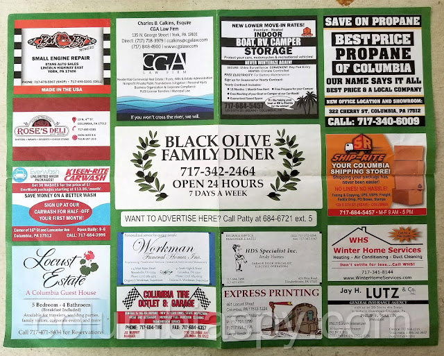 The above contact information is posted on this Black Olive placemat (lower left corner).