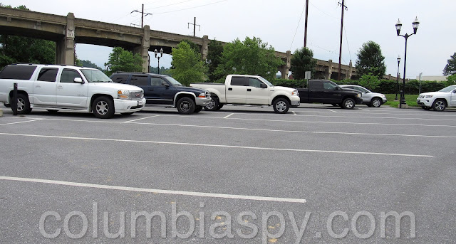 Not many vehicles with trailers parked in the spaces for vehicles with trailers