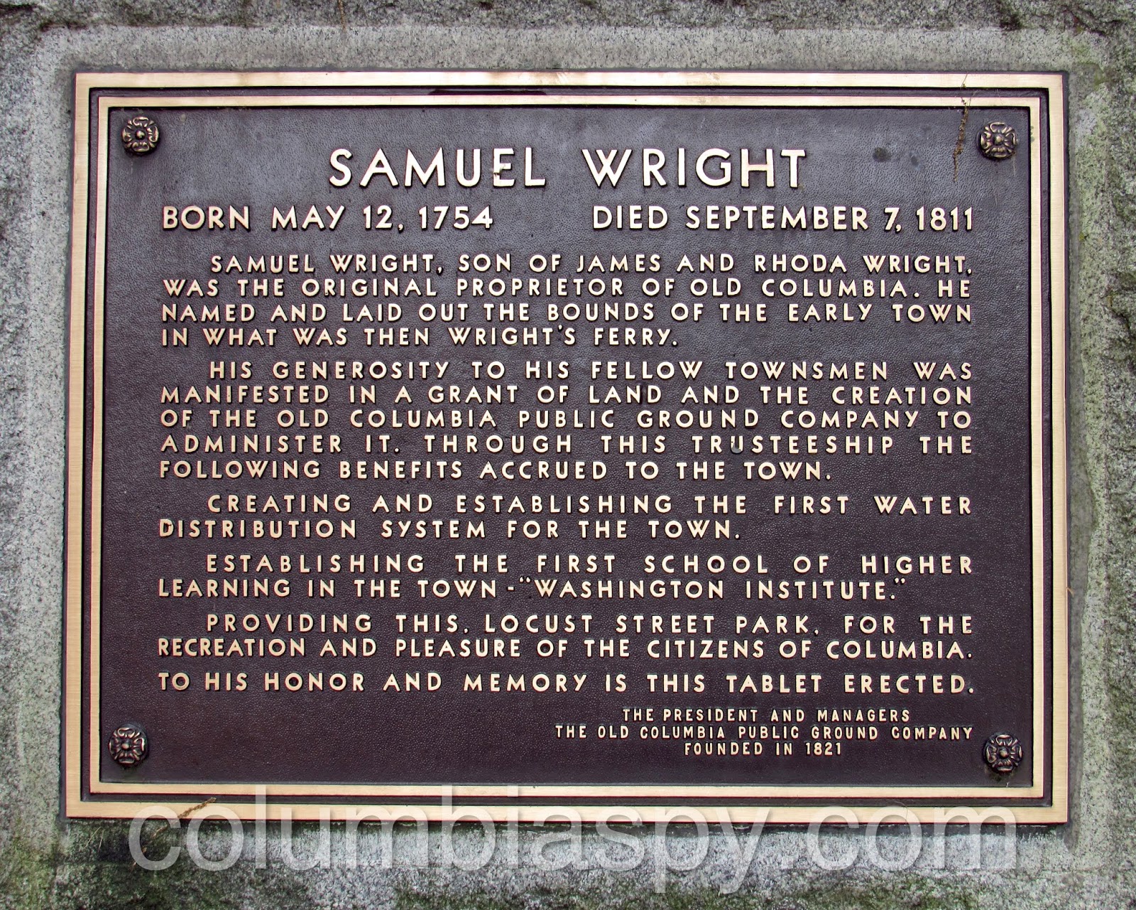 Locust Street Park, owned by the Old Columbia Public Grounds Company but leased by the borough for a token fee to allow police to have enforcement powers in the park. The Grounds Company is responsible for park maintenance.