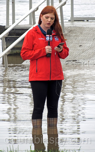 The river’s remarkable rise from heavy rains over the last few days brought news crews to Columbia River Park this afternoon. The river was about three feet above normal at 5 o’clock this afternoon.