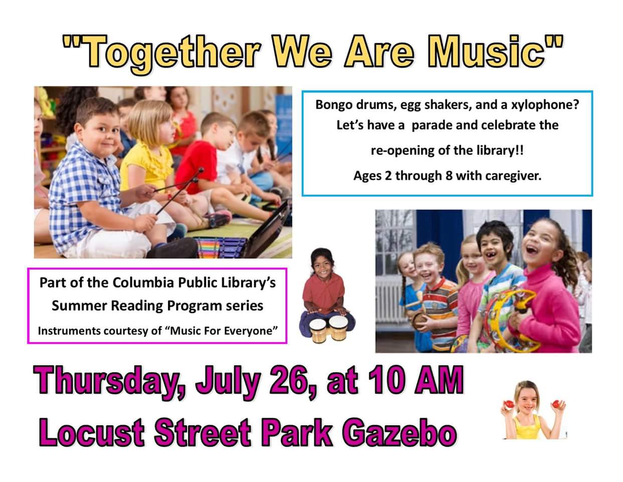 "Together We Are Music" at the Park Gazebo Thursday, July 26 Share this: Click to share on X (Opens in new window) X Click to share on Facebook (Opens in new window) Facebook More Click to share on Bluesky (Opens in new window) Bluesky Click to share on X (Opens in new window) X Like Loading... Related