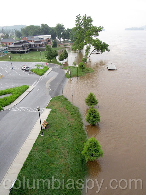 Water levels at Columbia River Park this morning had receded slightly compared to last night.