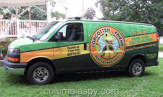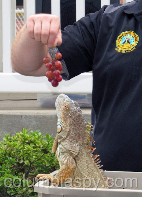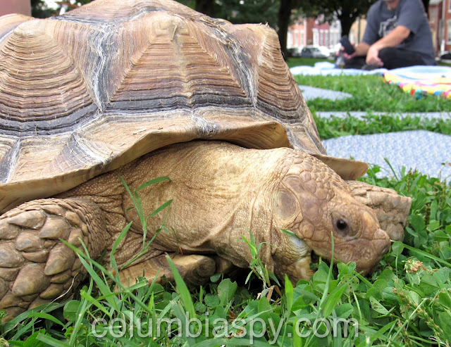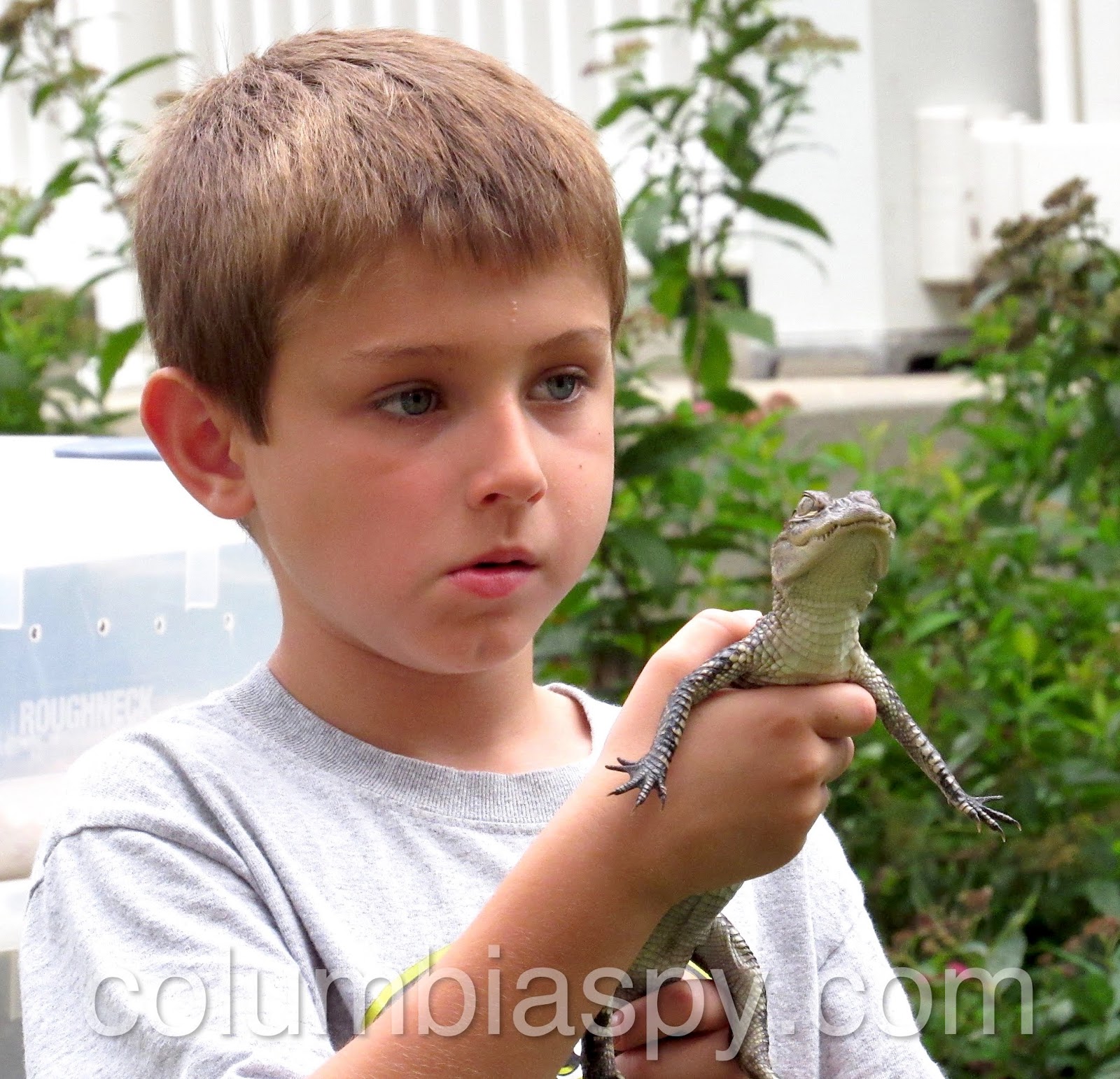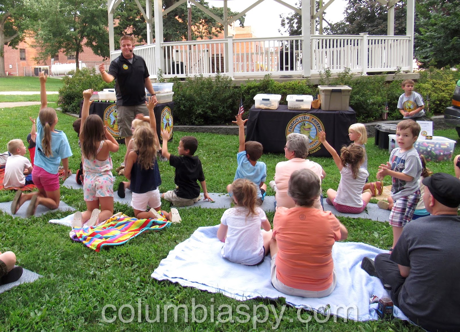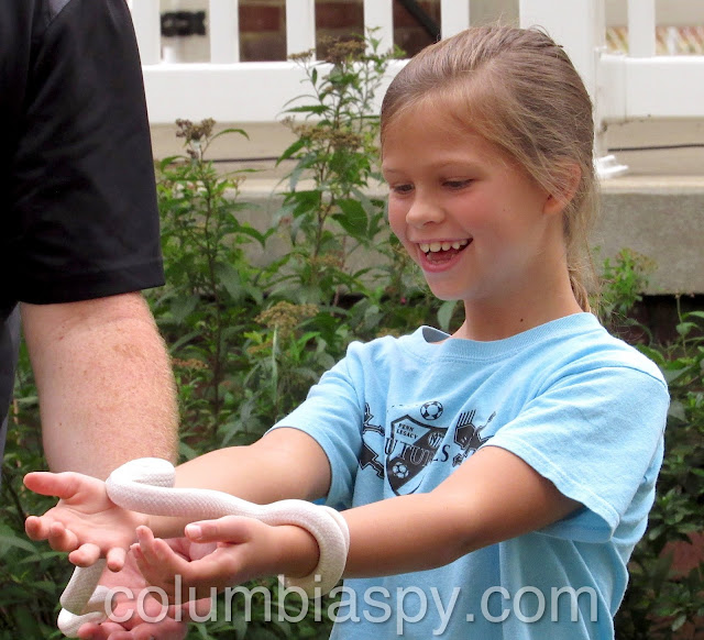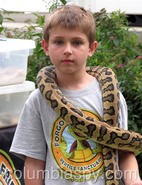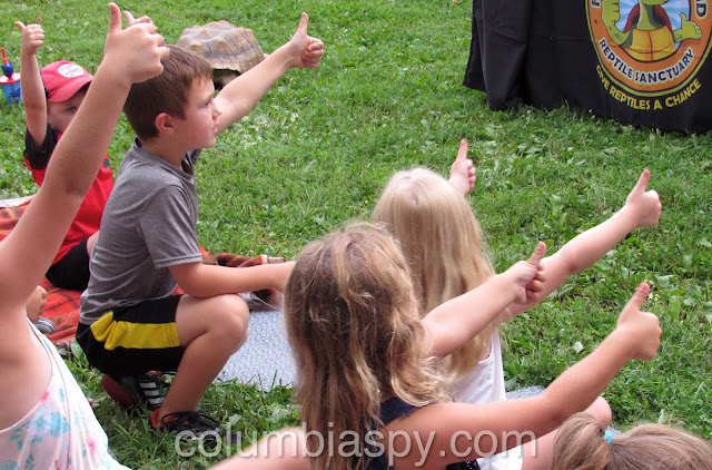 Herpetologist Jesse Rothacker finished out the Columbia Public Library’s summer reading program series with “Rockin’ Reptiles” Thursday evening – to the delight of children and adults. Rothacker, the founder of Forgotten Friend Reptile Sanctuary, presented a variety of reptiles – snakes, lizards, crocidilians, and a tortoise named “Abraham” – to onlookers in Locust Street Park. Children were permitted to handle and touch some of the animals.